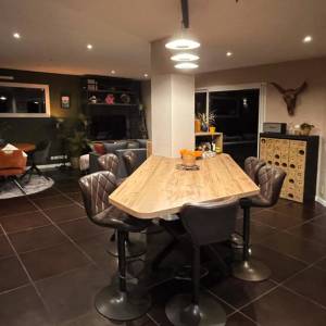 Le duplex inversé inverse la logique traditionnelle : chambres au rez-de-chaussée, espaces de vie à l'étage supérieur. Cette configuration permet de profiter des vues imprenables depuis le salon et optimise la lumière naturelle dans la pièce de vie.