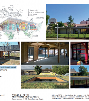 Notre atelier d’architecture cumule un certain nombre d'expériences et d’immersions au cœur de projets de ce type, tel que halles de villages, salles polyvalentes, écoles et crèches, restaurants, des commerces de proximité, mais aussi projets d’ombrières photovoltaïques.