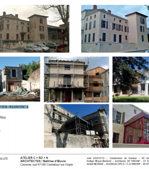 Joël CASTETS – Conducteur de travaux – 06 84 600 165 – pcplandirect@gmail.com Kellian Royer-Dumont – Architecte DE HMONP - 07 82 55 44 71 - kellianroyer@gmail.com André NOWAK – Architecte DPLG / O.A HMONP - 06 07 74 95 02 - andre.nowak@wanadoo.fr