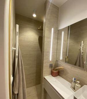 Architecte d'intérieur depuis bientôt 6 ans. J'ai réalisé des projets au sein de maison, d'appartements, de salon de coiffure, de boutique de prêts à porter. J'ai également fait 10 ans de service et serai donc intéressée pour gérer un restaurant. Je m'occupe des suivis de chantier. Je viens justement d'en terminer un. Ma mère était la première femme carreleur de France, et mon père est menuisier. J'ai grandi sur les chantiers. Nous avons réalisé nous mêmes les travaux de 2 immeubles (soit 6 appartements) et d'une maison, dans le cadre de notre SCI. Je suis spécialisée dans l'optimisation d'espace. Ce que j'aime le plus c'est de tirer partie des défauts. Je suis très attachée à l'esthétique évidemment mais les réflexions sont d'abord toujours tournées vers les habitudes mes clients, l'ergonomie, la facilité au quotidien. C'est pourquoi j'aimerais grandement participer à l'élaboration de bureaux.