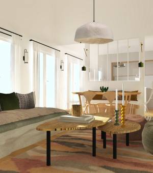 La seconde est basée sur la Décoration intérieure. Je me charge de l'ensemble des choix des matériaux, coloris, ameublements, décorations, textiles et luminaires et vous livre un dossier de conception complet, comprenant les mêmes éléments que celui de la prestation Architecture d'intérieur.