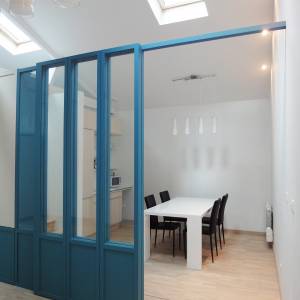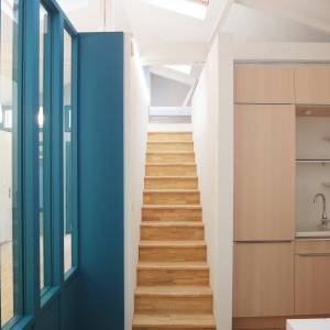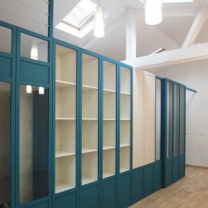 L’objectif de mon client était d’aménager l’appartement et de trouver un moyen ingénieux de monter sur la mezzanine tout en optimisant au maximum l’espace afin de trouver le confort d’un appartement « traditionnel ». Pour répondre au besoin de mon client, nous avons proposé de créer du mobilier sur-mesure « multifonction ». Par exemple, l’escalier sert à la fois de table à manger, de cuisine et de rangement. Afin de réduire les coûts, mon client a choisi de faire quelques finitions lui-même.