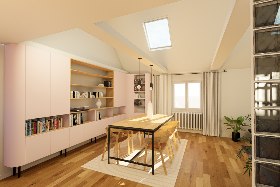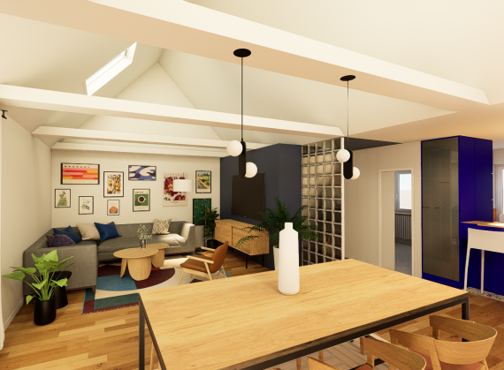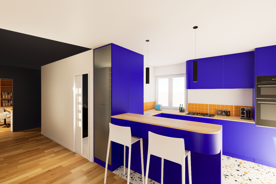 Un projet d’aménagement d’un appartement coloré et fonctionnel pour 2 personnes. Les matériaux et couleurs sélectionnés permettent la délimitation des espaces tout en gardant une circulation libre.