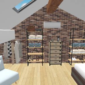Le souhait de mes clients est d'aménager leur comble dans un esprit roofing, Jungle luxuriante. Dans cet espace de comble multi-fonctions, l'objectif était de réunir deux bureaux, deux ateliers et un espace détente.
