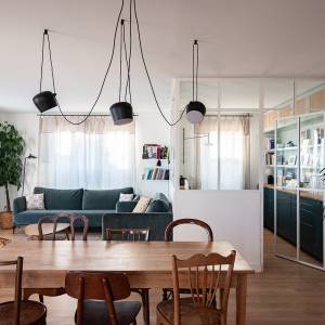 L’appartement était en très bon état mais pas tout à fait à leur goût. Ils ressentaient le besoin d’optimiser l’espace de la grande pièce de vie pour mieux se l’approprier, avoir plus de rangements dans la cuisine et le salon et aménager au mieux la pièce avec leurs meubles.