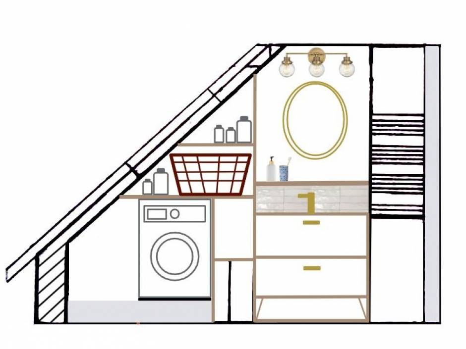 Un coin buanderie, situé sous la mansarde, inconfortable au quotidien