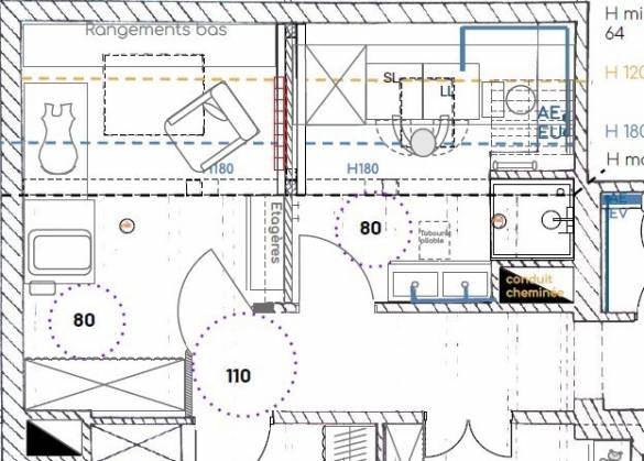 Le projet consistait à créer une chambre supplémentaire en transformant le dressing actuel, tout en cloisonnant l’unique salle d’eau de l’appartement, aujourd’hui ouverte sur cet espace dressing.