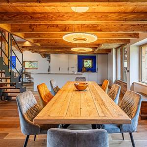 Restructuration et rénovation de cette grande pièce à vivre de 100 m², recouverte, du sol au plafond par de la toile jaunie. Repositionnement d'un escalier suspendu, accueillant, grandiose, à l'image des propriétaires Choix des couleurs osés, chaleureux. Agencement sur mesure.