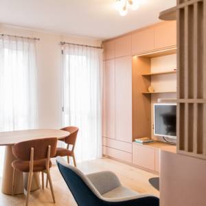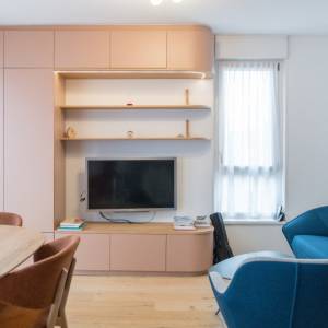 La rénovation d'espaces anciens offre souvent un mélange captivant de nostalgie et de modernité. Sur Mesure : Une Cuisine Unique en Noyer et Laiton : Kubisterie a insufflé une nouvelle vie à cette cuisine en créant des façades en placage noyer et des plinthes en stratifié laiton. L'aspect sur mesure ne s'arrête pas là - la dimension de cette cuisine intrigue. Plus haute que la normale, elle présente un plan de travail de 95 cm de hauteur, surplombé d'une plinthe de 6 cm. Cette configuration ingénieuse maximise l'espace de rangement dans les caissons, offrant une praticité supplémentaire. Marriage Élégant : Quartz et Zellige Vert : L'esthétique raffinée de cette cuisine se concrétise dans l'alliance harmonieuse du plan de travail en quartz et de la crédence en Zellige vert, minutieusement posée par Concepto sas. La symphonie des textures apporte une profondeur visuelle tout en rappelant l'héritage historique de la cuisine. Détails Distinctifs : Niches Arrondies et Placard Astucieux : Une contre-cloison en platrerie joue le rôle d'une toile artistique, intégrant des niches arrondies colorées. Ces détails ajoutent du caractère et une touche d'originalité à l'espace, insufflant une dynamique contemporaine. De plus, un grand placard blanc astucieusement positionné cache la machine à laver et le chauffe-eau, préservant ainsi une apparence propre et organisée. Équilibre Pratique : Linéaire de Colonnes et Terrazzo d'Origine : Loin des conventions, la cuisine se démarque par l'absence de meubles hauts. À la place, un linéaire de colonnes en hauteur intègre de manière élégante le four, le micro-ondes et le réfrigérateur. Un élément unique mérite une attention particulière : le terrazzo d'origine. Conservé avec soin, ce sol en terrazzo évoque l'histoire du lieu tout en fusionnant avec l'esthétique actuelle. Réunion de Styles : Terra-cotta, Vert, Laiton et Blanc : Le cœur de cette cuisine réside dans l'équilibre subtil entre des éléments de styles contrastés. L'association audacieuse du terra-cota, du vert, du laiton et du blanc crée une esthétique singulière, mélangeant une ambiance rétro avec des touches contemporaines. La rénovation complète de cette cuisine des années 1930 est une illustration de l'art de marier le passé et le présent. Avec sa conception sur mesure, ses détails distinctifs et son équilibre entre les styles, cette cuisine est un témoignage de la manière dont l'ingéniosité et la créativité peuvent donner naissance à un espace à la fois fonctionnel et esthétiquement captivant.