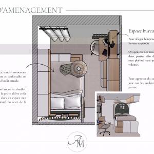 Pour un effet wahou et originale, la cliente souhaitait des plans pour concevoir une tête de lit pont pour aménager sa chambre d'amis. Elle souhaite une ambiance douce, naturelle et confortable. Le bois et le cannage vont venir réchauffer l'association du bleu et du rose.