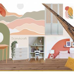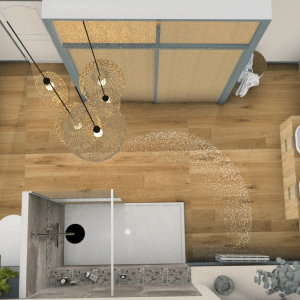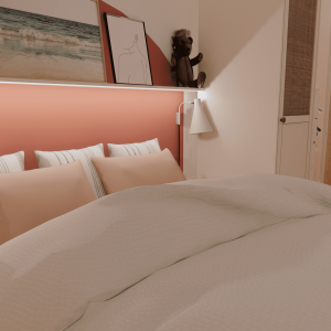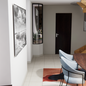 Lorsqu'il s'agit de location saisonnière, il me paraît judicieux de donner une identité forte au lieu pour créer un dépaysement aux visiteurs. Ici, l'étude de la distribution des pièces était inévitable pour ajouter de la fonctionnalité à cet appartement. Pour les couleurs, j'ai proposé une harmonie complémentaire de teintes froides et de teintes chaudes mêlant un dégradé de roses poudrés et un camaïeu de verts, le tout, dans un esprit néo Art-déco que l'on retrouve au niveau des formes utilisées et du laiton par touches.