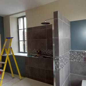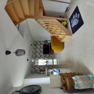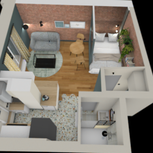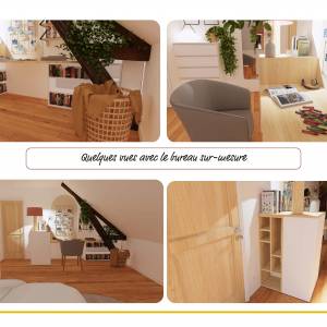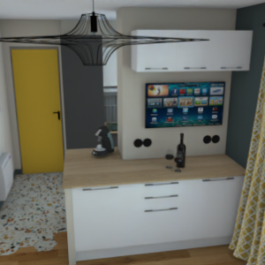 Un bel appartement à rénover et à relooker entièrement pour y accueillir 2 personnes en location saisonnière. La configuration de la salle d'eau ne permet pas l'optimisation de son volume et les toilettes sont minuscules. La trop faible largeur de ces 2 pièces ne permet aucune circulation et l'emplacement de la porte d'entrée empêche de les élargir. Il m'a donc paru judicieux de créer un volume pour la salle d'eau à la place de la cuisine ouverte et d'implanter la cuisine en "i" depuis l'entrée jusqu'au séjour. L'espace aujourd'hui inexploité se trouvant derrière l'emplacement du lave-linge, trouve ainsi son utilité en tant que placard d'entrée coulissant sur toute la hauteur. Réduire la superficie de la chambre de 15 m² pour gagner en espace de jour a été envisagé mais cela engageait des travaux trop importants par rapport au budget dédié (ouverture dans un mur porteur). J'ai donc opté pour une mise en valeur des éléments qui apportaient du cachet à la pièce.