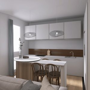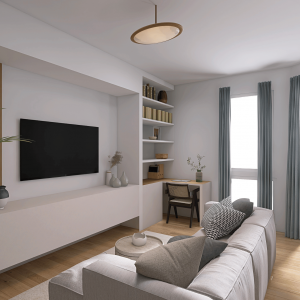 Projection 3D pour permettre aux futurs acquéreurs de mieux se projeter dans cette salle de vie, de cet appartement haussmannien