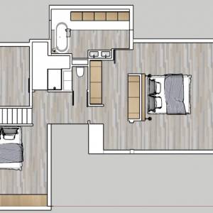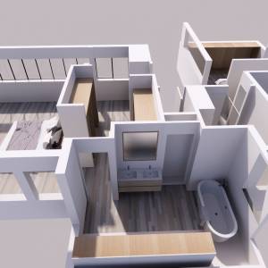 Le souhait de mes clients est de revoir la décoration d’un séjour cathédral. La couleur grise du mur rendait cette pièce sombre et triste. Elle souhaitait un mur effet brique /parement pour donner plus de cachet. La 1ere proposition est un séjour bois & pierre avec le pan 3D en MDF qui apporte chaleur et cachet à l’intérieur. Sur le mur cathédral, des cadres de différentes tailles avec les photos de leurs nombreux voyages. Sur l’autre mur, du papier peint imitation pierre que nous avons choisie ensemble à l’aide des échantillons que j’avais présélectionnés. La 2e proposition est un séjour nature Feng-Shui. Les miroirs ronds qui évoquent l’eau, les tablettes avec des plantes à feuillage rond et une guirlande éclairage à LED qui descend de l’étage supérieur pour une lumière douce. Sur le mur d’en face, un papier peint effet bambou pour apporter du cachet au mur. Ces deux propositions peuvent se combiner pour créer une solution unique et personnalisée.