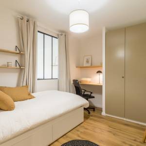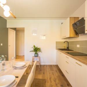 Renovation complète pour ce T3 de 66m2, situé au 4ème étage d'une résidence des années 70 avec vue sur la montagne emblématique de la vallée de l'Arve : Le Môle. Les défis pour ce projet : - Décloisonner les espaces et rendre la circulation plus fluide d'une pièce à l'autre, - Créer un espace salle à manger dans le même espace que le salon de 15 m2, - Redonner un coup de neuf à la décoration vieillissante avec des couleurs douces et végétales, - Créer de nombreux rangements pour les jeux de société et les livres des propriétaires.