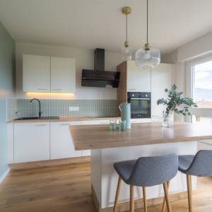 Coup de neuf pour cet appartement de 72m². Dans son jus il avait déjà du potentiel avec sa cuisine ouverte sur le salon par un IPN installé par l’ancien propriétaire. L’ensemble a été totalement rénové du sol au plafond pour créer une ambiance minimaliste et du mobilier qui puisse durer dans le temps, avec une literie de qualité, un sol PVC effet bois résistant au passage. L’ancien dressing, exigu et sans fenêtre a été agrandi en une chambre de 9m² avec verrière métallique. Dans cet aménagement, chaque pièce possède sa propre ambiance avec des couleurs lumineuses et naturelles pour plus de douceur et de modernité. Le choix judicieux de quelques objets déco permet d’embellir le bien dès le premier coup d’oeil. La preuve en est, l’appartement a trouvé ses locataires dès la fin des travaux.