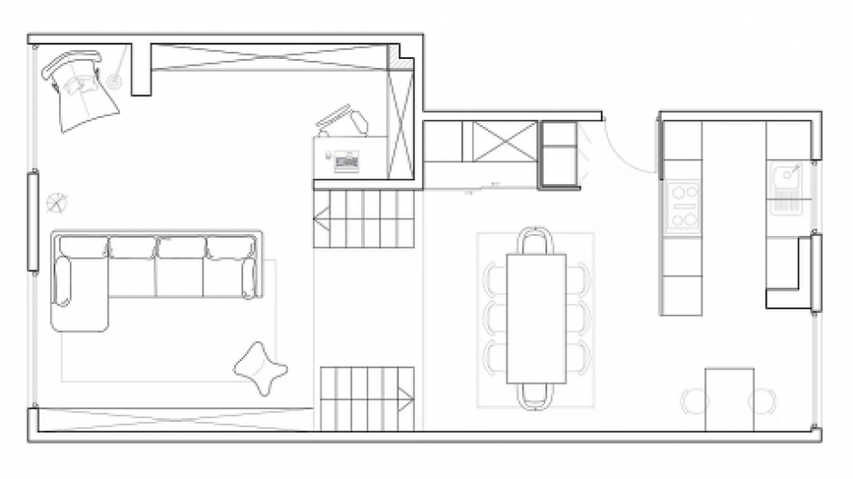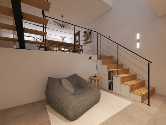 Les demi-niveaux ont été exploités pour optimiser l'utilisation de l'espace, offrant ainsi une fonctionnalité maximale à cet appartement. De plus, les espaces de service ont été réaménagés, ajoutant ainsi une valeur supplémentaire à ce lieu rénové.