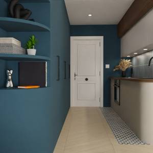 Avant la signature définitive, m’a cliente avait besoin de se projeter dans l’appartement qu’elle avait visité. La pièce de vie et la chambre ont fait l’objet d’un aménagement et d’une prestation décoration. Quant à la cuisine, une rénovation complète a été proposée. L'ENTRÉE Avec une simple console sur mesure et un miroir pour habillé le couloir. LA PIÈCE DE VIE Après avoir rafraîchi les murs et cassé des morceaux de cloisons pour l’ouverture de la pièce, le salon a été meublé dans une ambiance épurée avec des tons neutres. Quant à la salle à manger, un coin bureau sur-mesures à fait place dans cet espace spacieux. LA CUISINE Réaménagement complet et rénovation intégrale de cette pièce technique. Prestations similaires à une cuisine IKEA. La cliente voulait rester dans des tons blanc et crème. Le petit plus de cette cuisine, le cellier à l’arrière. LA CHAMBRE Les couleurs sont encore une fois très neutres et apaisantes, à la demande de la cliente. Le petit plus de la pièce, le dressing entièrement agencé sur-mesures. Quelques touches de couleurs apportés par les accessoires légers et le linge de lit. La salle de bain étant récemment rénovée, aucune modification n’a été nécessaire.