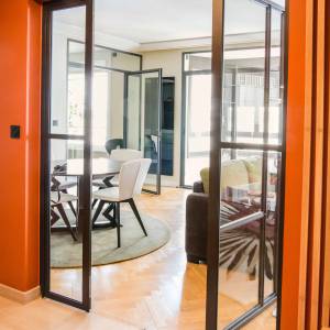 Cet appartement a été rénové entièrement dans le but de louer meublé à des étudiants ou en location courte durée. Pour créer un appartement plus contemporain et pouvant être occupé par 1 ou 2 personnes, la cuisine a été repensée, décloisonnée et se prolonge désormais sur l’espace de vie. Dans cet appartement qui ne possédait que des espaces ouverts, nous avons créé, tout en préservant un salon-séjour confortable, une chambre qui bénéficie de la lumière en second jour grâce à une verrière. Un second espace nuit avec bureau a été installé sur la mezzanine. La salle de bain a été totalement rénovée et bien que de petites dimensions, elle est très fonctionnelle et tout à fait charmante avec son mur en pierres et ses zelliges bleus. Rénové, décoré et meublé, cet appartement est désormais prêt à accueillir ses nouveaux occupants !