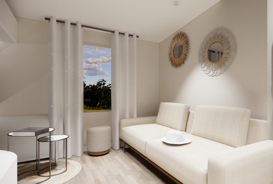 En apportant de la lumière avec du mobilier aux teintes claires, et plus moderne, en relookant l'escalier au bois sombre, en dessinant du mobilier sur-mesure et en proposant une nouvelle implantation du mobilier pour améliorer la circulation du fauteuil roulant, je pense avoir répondu à un cahier des charges bien remplis.