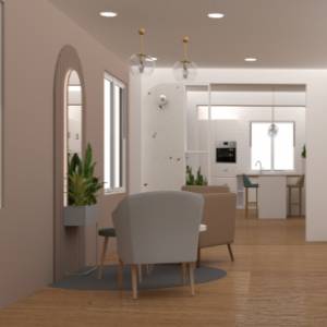 Conception et rénovation d'un appartement à Paris 17, rénovation des salles de bains et du séjour dans un style haussmannien classique utilisant une palette de couleurs pastel.