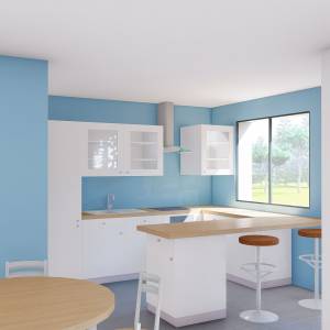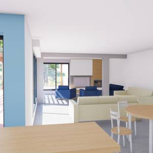 Construction maison individuelle à R+1 avec terrasse et piscine en zone PPRI. Contraintes d'expositions, de voisinages et de surfaces constructibles sur la parcelle. L’exposition Ouest est favorisée afin de bénéficier de l’ensoleillement et de créer des espaces extérieurs variés. La volumétrie minimise l’impact visuel sur la maison voisine en permettant de conserver leur exposition avantageuse. Les façades sont discrètes sur les accès communs et s’ouvrent pour les espaces plus privés et intimes.