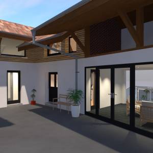 Présentation des images de rendu 3D pour visualisation de l'insertion de l'ensemble sur la parcelle du terrain