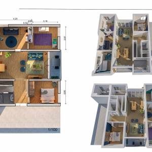 Extension d'une habitation individuelle : reprise des plans existants puis de l'état projeté - constitution du dossier de déclaration préalable de travaux ,en collaboration avec une architecte d'intérieure