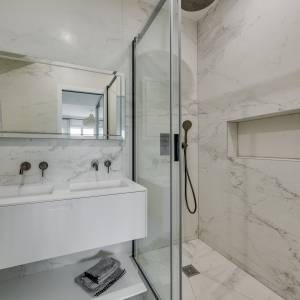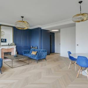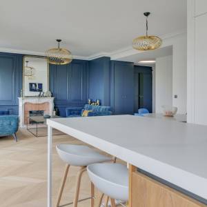 Rénovation complète des 2 niveaux de la maison + création de combles isolés aménageables. Au rez-de-chaussée, nous avons ouvert le mur porteur en trois endroits pour agrandir l’espace au maximum et circuler autour de la nouvelle cheminée, pièce centrale de la pièce de vie. L’emplacement de la cuisine a été modifié afin de bénéficier d’une lumière traversante jusqu’à la salle à manger. Une verrière d’atelier permet de séparer la cuisine du séjour sans perdre en luminosité, elle s’ouvre intégralement pour plus de convivialité. Les poutres apparentes ont été aérogommées pour retrouver le veinage naturel du bois, et la poutre centrale renforcée par moisage. Une nouvelle chambre avec salle de douche privée ainsi qu’un grand placard d’entrée complète le niveau. Au 1er, l’agencement et la distribution des 4 chambres ont été revus, un nouvel accès aux combles a été créé et la suite parentale s’est doté d’un grand dressing ainsi que d’une belle salle de bain avec grande douche, double vasque, toilettes et baignoire îlot. Voir le projet AVANT - APRES
