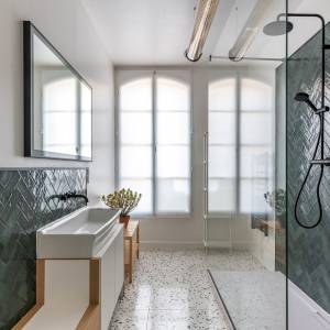 Les propriétaires souhaitaient un mur complet de rangements. Pour ne pas alourdir l'espace, l'idée a été de créer un grand module alternant parties ouvertes et parties fermées.