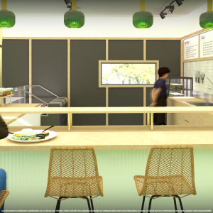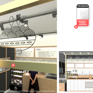 Dessin et rendu photo réaliste facilitant au professionnel la réalisation et le gain de temps auprès du client. Escalier en métal et bois aménagé avec optimisation de l'espace en jardin d'hiver.