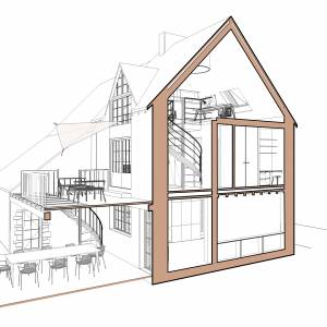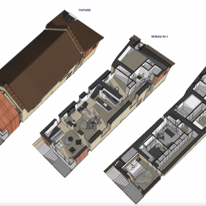 RÉNOVATION INTÉRIEURE D'UNE MAISON DE VILLE Réorganiser l'agencement afin de moderniser et fluidifier l'espace Un jeune couple grenoblois a sollicité l’atelier afin de rénover l’intérieur de leur nouvelle maison des années 2000 située dans le quartier des Eaux-Claires. Cette maison mitoyenne intégrée dans un tissu urbain classique composé d’immeubles et d’habitat de différentes hauteurs possède une parcelle étroite, en longueur et traversante reliée à deux rues de part et d’autre. La commande des clients s’est portée sur le réaménagement du rez-de-chaussée ainsi que la salle de bain à l’étage. Le reste des travaux – étage et combles – interviendra dans une seconde phase. Leur envie principale a été de créer un espace chaleureux, fonctionnel, avec une gestion intelligente des flux afin de se sentir bien chez soi. L’idée de faire appel à un architecte correspond de leur part à une attente esthétique avec une volonté d’apporter une touche artistique et originale tout en ayant un effet épuré avec une sensation d’espace sans surcharger l’ensemble. Le style souhaité est celui se rapprochant de l’esprit scandinave avec des tons clairs et naturels faisant appel à des matériaux tels que le bois, le carrelage, les carreaux ciment et des matières sensorielles et lumineuses. Après divers échanges et options, une version de projet a été affinée afin de répondre au mieux aux goûts et aux usages des clients. Les entreprises prennent le relai afin de budgétiser précisément les éléments clés de l’esquisse.