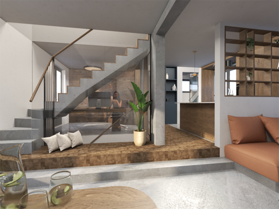 Rénovation complète d'une maison des années 1970 pour une famille en quête de renouveau. Transformation d'une maison vieillissante en un espace contemporain et fonctionnel. Famille de 4 personnes à la recherche d'une maison adaptée à leur mode de vie et au télétravail Objectif : Maintenir 3 chambres, créer deux espaces bureaux et moderniser l'ensemble de la maison Styles et matériaux : Influences contemporaines, matériaux nobles et naturels.