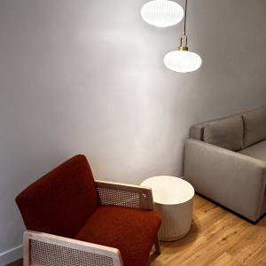 La mission de ce projet a consisté à réalier le rève du client d'avoir une grande salle de bain avec un sauna. La pièce existante demandait à se projeter et la complexité d'inclure le sauna à demandé un agencement précis afin de permettre cette réalisation. L'utilisation de beau matériaux (terres cuites au sol, robinetterie en laiton) allié aux arches crées pour les entrées apportent de la douceur et la zénitude requise pour cet espace.
