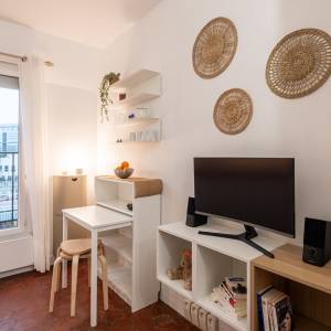 Nous avons réalisé l'aménagement d'un salon et d'une salle à manger pour une cliente à Chatenay-Malabry (92). Après des années de réflexion, elle a fait appel à un architecte pour concrétiser son projet. Ensemble, nous avons transformé cet espace de 19 m² en un lieu chaleureux et multifonctionnel, idéal pour le télétravail, le sport et la vie en famille. Inspiré par le style scandinave, nous avons opté pour des tonalités claires et des matériaux naturels. Des meubles sur mesure ont été créés pour optimiser le rangement et définir les différents espaces. Cet aménagement combine esthétisme et fonctionnalité, offrant un cadre de vie agréable et pratique au quotidien.