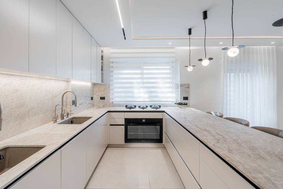 Ce projet consistait à transformer deux appartements distincts en un seul espace de vie harmonieux et fluide. L’objectif était clair : créer un intérieur à la fois design, luxueux et chaleureux. Le travail a porté sur : La redistribution des volumes pour offrir de grandes pièces ouvertes et lumineuses, Un design contemporain associant lignes épurées, matériaux nobles et finitions haut de gamme, Une ambiance chaleureuse grâce au choix des couleurs, des textures et d’un éclairage sur-mesure, Une circulation fluide et intuitive, permettant aux espaces de dialoguer entre eux sans perdre en intimité. Le résultat est un appartement élégant et accueillant, où chaque détail a été pensé pour allier confort, raffinement et modernité.