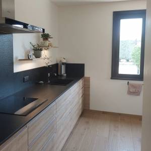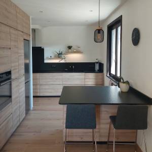 Les clients ont fait appel à moi pour rénover entièrement le rez-de-chaussée de leur maison familiale. Ils m’ont fixé 3 objectifs principaux : aménager une vraie entrée, agrandir la cuisine et créer une buanderie indépendante. L’espace du rez-de-chaussée a été repensé de manière à optimiser la surface disponible dans son ensemble tout en définissant des fonctions bien précises pour chaque pièce. Une verrière est installée à l’entrée afin de séparer l’entrée du salon tout en laissant passer la lumière. Sous l’escalier, un placard sur-mesure a été imaginé afin d’organiser des rangements adaptés pour les chaussures et manteaux de l’entrée. La cuisine a été agrandie et entièrement repensée afin d’y intégrer un îlot central convivial, de nombreux rangements et un plan de travail dédié au petit électroménager. Une vraie buanderie a été créée dans le fond du garage, facilement accessible par la cuisine et entièrement isolée. Les clients sont ravis des nouveaux plans, car ils répondent à leurs besoins. C'est exactement la mission que je me suis fixée, être à l'écoute de mes clients. Mon approche est avant tout pragmatique : la maîtrise technique de l’espace alliée à la dimension humaine.J’aime créer des intérieurs à la fois pratiques, chaleureux et à l’image de leurs habitants.