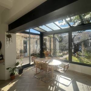 Réhabilitation complète de ce T3 dans un ancien immeuble Marseillais. Mission complete : conception des plans d'amménagement, consultation des entreprises, suivi de chantier. Les objectifs étaient multiples : Redonner du cachet à cet appartement doté d’éléments propres à l’ancien, tout en apportant une décoration moderne aux notes méditerranéennes Apporter de la lumière à la pièce aveugle de 6m2 qui deviendra un bureau Créer des rangements, qui manquaient à l’agencement existant Rénover entièrement la salle de bain La grande verrière intervient comme pièce principale de l’espace séjour et permet d’agrandir visuellement l’espace, en laissant apparaitre un grand papier peint panoramique au motifs évoquants les calanques, clin d’oeil à la région. Une déco ultra graphique, réchauffée par des matériaux tels que le bois ou cannage apportent modernité tout en restant fidèle à l’environnement méditerranéen qui l’entoure La restauration de la cheminée ancienne en marbre, le parquet en bâton rompu, ou bien les portes en moulures redonnent son charme à l’espace, souligné par des touches d’époque telles que les boutons de porte en laiton, les radiateurs en fonte ou les interrupteurs en porcelaine. On créer du rangement dans la chambre grâce à un pont menuisé autour du lit, et voila un petit cocon prêt pour recevoir ses nouveaux occupants !