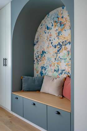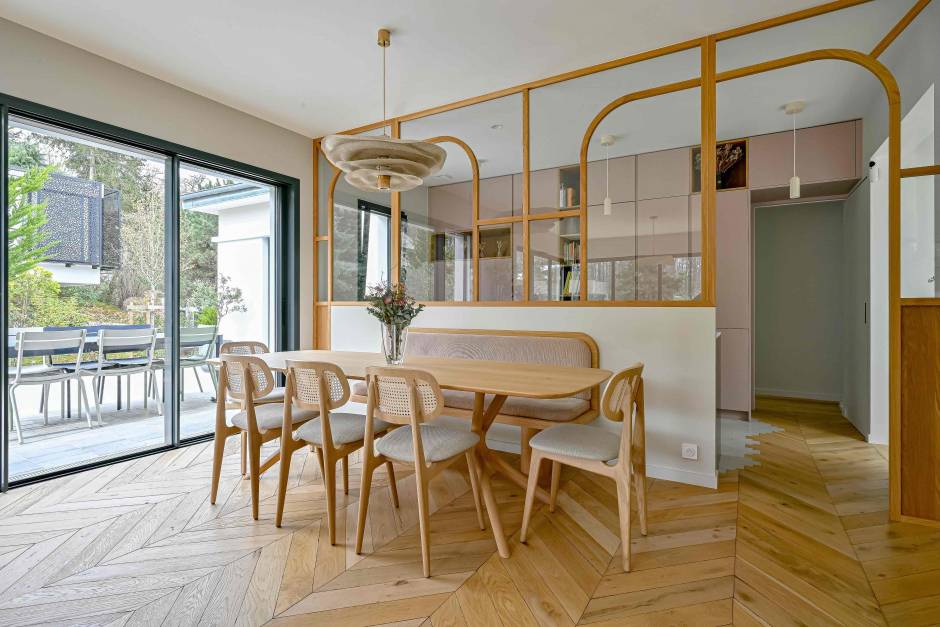 Le projet Joffre est une rénovation complète d'une maison des années 60 de 230 m². Dans cette maison répartie sur deux niveaux, les clients souhaitaient revoir entièrement l'aménagement intérieur pour l'adapter au mieux à leurs besoins. Les différents espaces ont été redistribués pour plus de cohérence et de fonctionnalité. L'ambiance esthétique se veut chaleureuse et colorée, à l'image de cette famille pleine de vie. Aux côtés d'un architecte HMONP, j'ai accompagné les clients de la conception (propositions d'agencements, propositions esthétiques, choix des matériaux et du mobilier, conception de meubles sur mesure) jusqu'à la livraison de la maison à la fin du chantier.