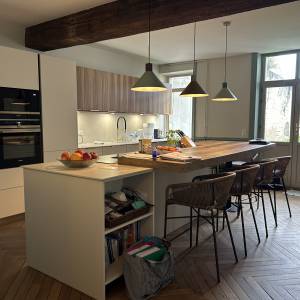 Cette opération a consistée en la rénovation de 3 niveaux dans une maison de type hotel particulier tourangeaux. La cuisine a été déplacée, les chambres ont été entièrement rénovées. Une chambre parentale a été créée au dernier étage par le recloisonnement des espaces.