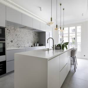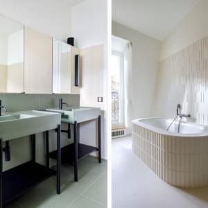 Cette maison datant de 1860 n’avait jamais été entretenue. Elle avait subi une extension partielle dans les années 50. Dans le cadre de la rénovation entreprise par les acquéreurs, entre le ravalement des façades et la réfection de la couverture, une restructuration totale a dû être opérée. En effet, le plan a été éclaté au rez-de jardin afin que la lumière puisse pénétrer de tous les cotés et que la distribution des espaces corresponde au mode de vie actuel. -ouverture des fenêtres autrefois condamnées -modification des accès -reprise en sous-œuvre Le projet final donne lieu à trois niveaux : Le rez-de-jardin composé d’une pièce à vivre avec une cuisine ouverte Le 1er étage composé de deux chambres d’enfants, d’une salle d’eau, de toilettes et d’un palier-bureau. Le 2ème étage composé d’une suite parentale avec une salle de bain, un dressing et un bureau. Les extérieurs ont été aménagés en teck et dans le sous-sol est dédié aux fonctions techniques (buanderie et rangement).