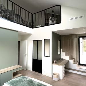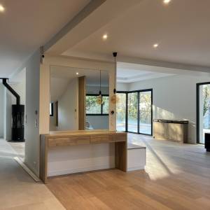 Restructuration globale de l'intérieur, modification de façade, extension, isolation, distribution des espaces, mobilier sur mesure et décoration