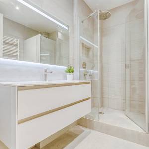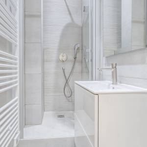 Les travaux ont duré plus longtemps que prévu, car nous étions en pleine crise sanitaire, et le carrelage de la salle de bain s'est fait attendre. J'ai proposé à ma cliente de mettre un autre carrelage disponible immédiatement, mais elle a préféré attendre (c'est vrai qu'il est très beau !).