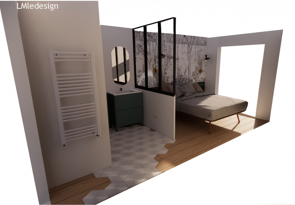 j'ai fait la conception 3D, plans, étude des matériaux et étude des besoins de la cliente, le but était de faire une transformation du garage pour avoir tout de plain pied.