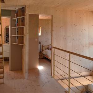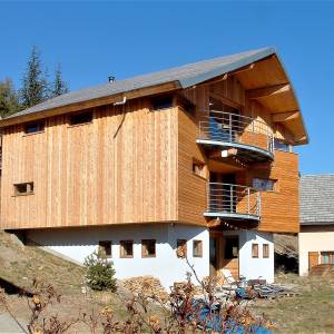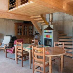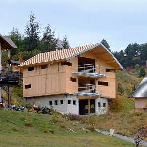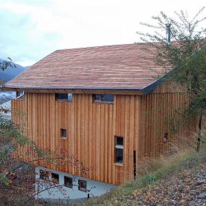 Architecture bioclimatique : protection au vent du nord, vitrages sud, l'ensoleillement hivernal permet de temperer gratuitement l'atelier à 1000 m d'altitude