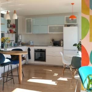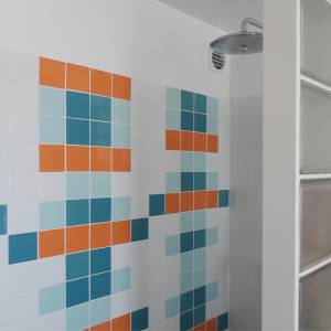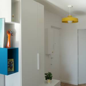 L’existant : Le local sur rue et partiellement sous verrière a été réhabilité pour la mise en vente. Il est « propre » mais sans caractère et ne répond pas aux besoins d’un espace de coworking. Le projet : Le client souhaite que ce projet comporte différents espaces de travail proposés à la location ainsi que ses propres bureaux. Une salle de réunion, une petite cuisine, un coin repos et une pièces destinée aux archives seront à disposition de tous. Nous proposons de marquer l’espace en créant une fresque géométrique. Celle-ci crée l’unité entre les différentes zones et s’étale sur les 14m de mur en réponse à la pierre. Nous créons 3 pôles de travail. L’entrée est marquée par une cloison en tôle perforée. Les matériaux et le mobilier apportent les touches naturelles et colorées. Les plateaux en bois massif ainsi que les rigoles passe câble ont été dessinés sur mesure. Les touches de couleurs donnent un côté vitaminé et dynamique à l’ensemble.