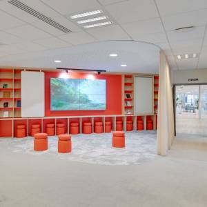 Aménagement d'un centre dentaire contemporain. Conception du projet. Réalisation et dépôt du Permis de construire Suivi de chantier partiel Concept graphique, chaleureux, coloré inspiré par l'architecture moderne du Havre.
