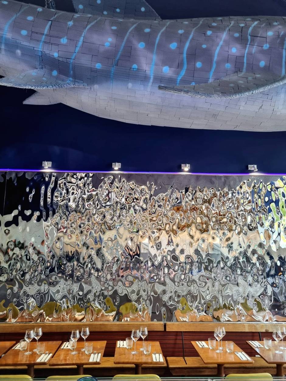 Le lieu est pensé comme une traversée entre deux univers qui se répondent : celui de la poissonnerie, brut et authentique, et celui de la restauration, convivial et expérientiel. La scénographie intérieure s’inspire directement du milieu marin comme une plongée sensorielle où volumes, matières et lumières recréent l’atmosphère de la mer.