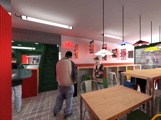 Développement d'un concept de restauration rapide pour une cuisine au wok. Style urbain, univers de la rue asisatique.