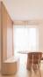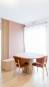 Après : Un coin bureau intégré dans le salon, profitant de la lumière naturelle venant des fenêtres du salon et de la cuisine.
